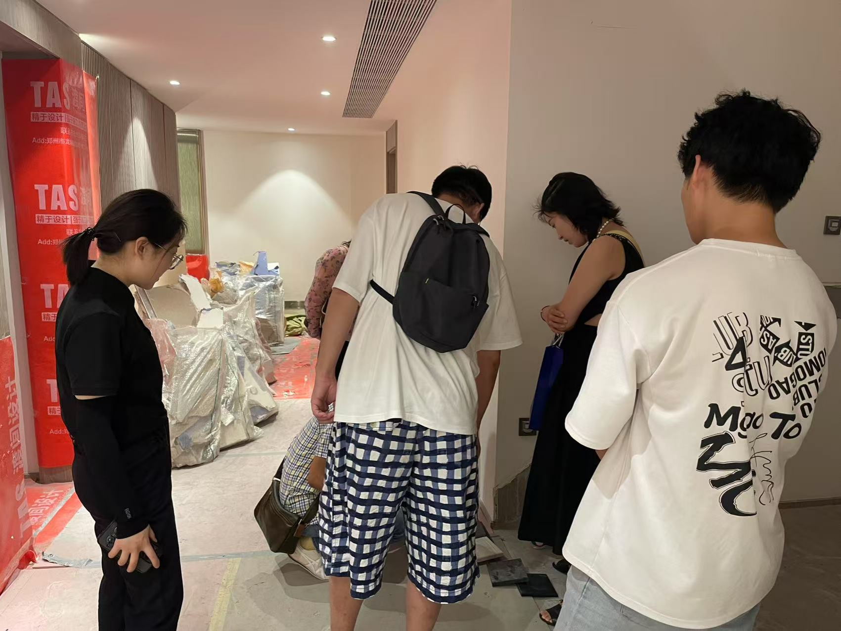 8月17日,李函老师在郑州几何装饰,针对室设2306班江柯惠、室设2305班李蒙蒙 “销售岗压力大”的困惑,现场分享沟通技巧,还与企业约定每周反馈学生适应情况;