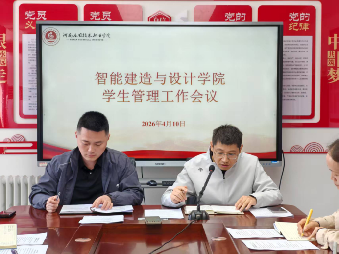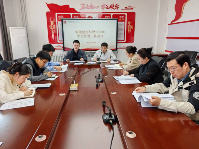 2026年4月10日,智能建造与设计学院于B417会议室召开学生管理工作会议。学院党总支书记宁晓冬、副书记张蓄金出席会议,全体专兼职辅导员参加会议,会议由张蓄金主持。