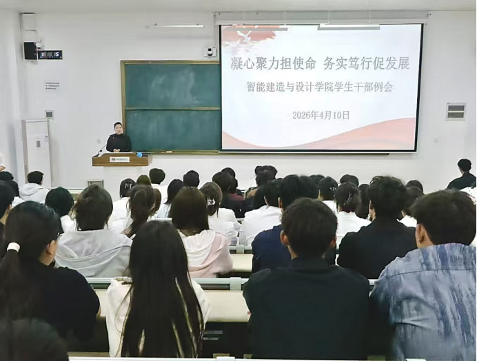 2026年4月10日,智能建造与设计学院于A101召开学生干部例会。团总支书记王莹、学工办主任史真出席会议,学院学生会干部参加会议。