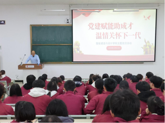 张虎以“党建赋能助成才 温情关怀下一代”为主题开展专题党课。他特别强调“青年的成长,是学院最大的牵挂”,并结合智能建造专业的战略意义,勉励学子以“工匠精神”锤炼专业本领,以“家国情怀”锚定人生方向,在党建引领下成长为敢担当、能奋斗的新时代建造人。