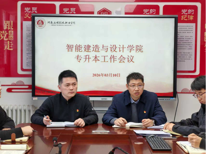 为进一步精准助力学生实现升学目标,2026年3月10日,智能建造与设计学院召开专升本工作专题研讨会。学院党总支书记宁晓冬,副书记张蓄金、学工办主任史真,专升本专员李希望及23级辅导员参加会议。
