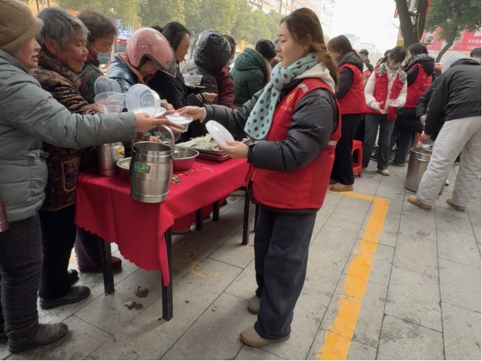 实践内容:2026年1月26日,在河南省南阳市唐河县参加腊八粥公益奉粥活动。与工作人员配合熬煮腊八粥,准备主食,为过往居民,环卫工人,外卖小哥,保安叔叔们送粥以及与志愿者分工协作,一边有序分发,一边引导排队领取等实践,通过这次腊八粥志愿者实践活动,我深刻体会到了传统文化的魅力和志愿服务的价值。