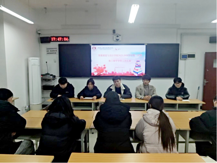 为进一步规范勤工助学管理工作,强化岗位育人效能,明确后续工作方向。2026年1月14日,智能建造与设计学院于F510召开2025-2026学年第一学期勤工助学学生工作汇报。学院资助专员尹宇龙、学生资助办公室相关工作人员、各岗位勤工助学学生参加会议。