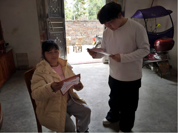 寒假期间,我在村委会开展学生资助政策宣传,现场向村民与家长讲解助学贷款、助学金、绿色通道等相关政策,耐心解答各类疑问。宣讲结束后,我进行入户走访,面向家庭经济困难学生家庭,一对一解读申请条件、流程,同步发放宣传资料,确保政策精准传达、不留死角。此次活动切实为家乡学子解决求学顾虑,助力资助帮扶落地见效。