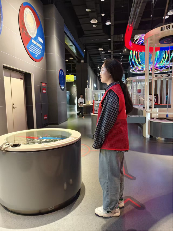 活动当天,志愿者们统一着装、精神饱满,迅速投入服务岗位。在电磁奥秘展区,志愿者们围绕电生磁、磁生电、电磁感应、高压电弧等趣味展项,用通俗语言讲解电磁原理,演示磁力互动、电流产生、能量转化等实验,帮助青少年直观理解看不见、摸不着的电磁力量,感受电磁科技在智慧电网、绿色能源、现代生活中的广泛应用。在活力地球展区,志愿者们结合地球结构、地质变迁、生态保护等内容,引导观众观察地球模型、了解板块运动、认识生态平衡,讲解地球磁场的保护作用、低碳生活与双碳目标的重要意义,传递“尊重自然、爱护地球” 的环保理念。